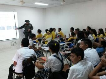 Correa agregó que los miembros de la institución incentivaron en los estudiantes a que informen ante sus padres, profesores o autoridades locales si observan la comisión de un delito ambiental como por ejemplo contaminación de ríos y quebradas, vertimiento de desechos tóxicos, mal manejo de residuos sólidos, contaminación auditiva y visual, esto con el fin de tomar las medidas necesarias en la aplicación de la normatividad legal.