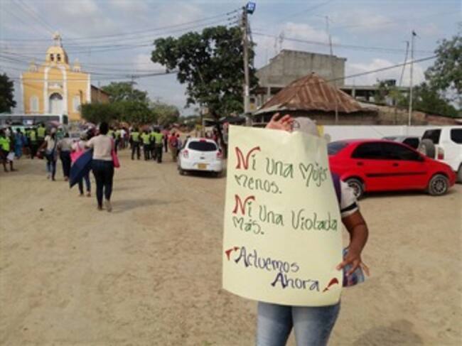 Centenares de habitantes del municipio de Santa Rosa de lima, al Norte de Bolívar, marcharon con pancartas, globos y suéteres blancos, para rechazar la violencia de género
