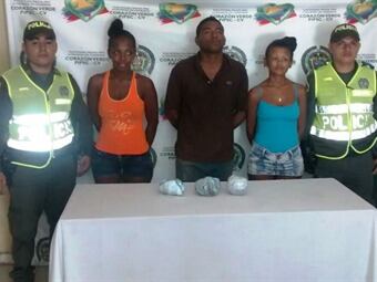 De inmediato acudieron al barrio San Fernando: sector Medellín, capturando en flagrancia a YANDI ROMERO BERMEJO, de 21 años, sorprendida en poder de 351 gramos de marihuana; MARIA DEL MAR CAMPILLO PEREZ, de 19, con 250  gramos de bazuco y OMAR EDUARDO PUERTA MORENO, de 21, a quien le fueron incautados 500 gramos de marihuana