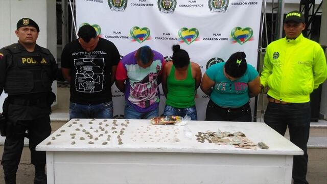 Los aprehendidos fueron identificados como Leonardo Manuel Montes Sequeda, de 22 años; Melisa Andrea Beleño Bustamante, de 24 años; Herlyn Castro Montes de 19 años y Cristian Oñate Barreto, de 29 años, este último al parecer registra antecedentes por porte ilegal de armas de fuego y hurto