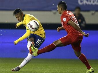 44' PT -> Neymar fue amonestado por demorar en un tiro libre. #BRA 1-1 #PER.http://t.co/IpZWi6dWKs#Chile2015