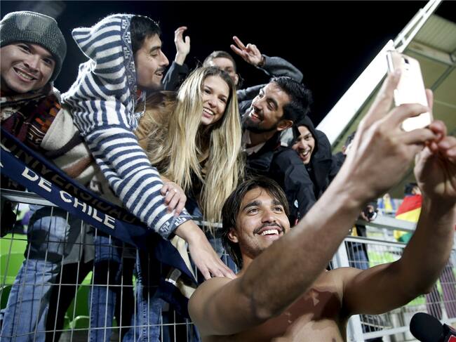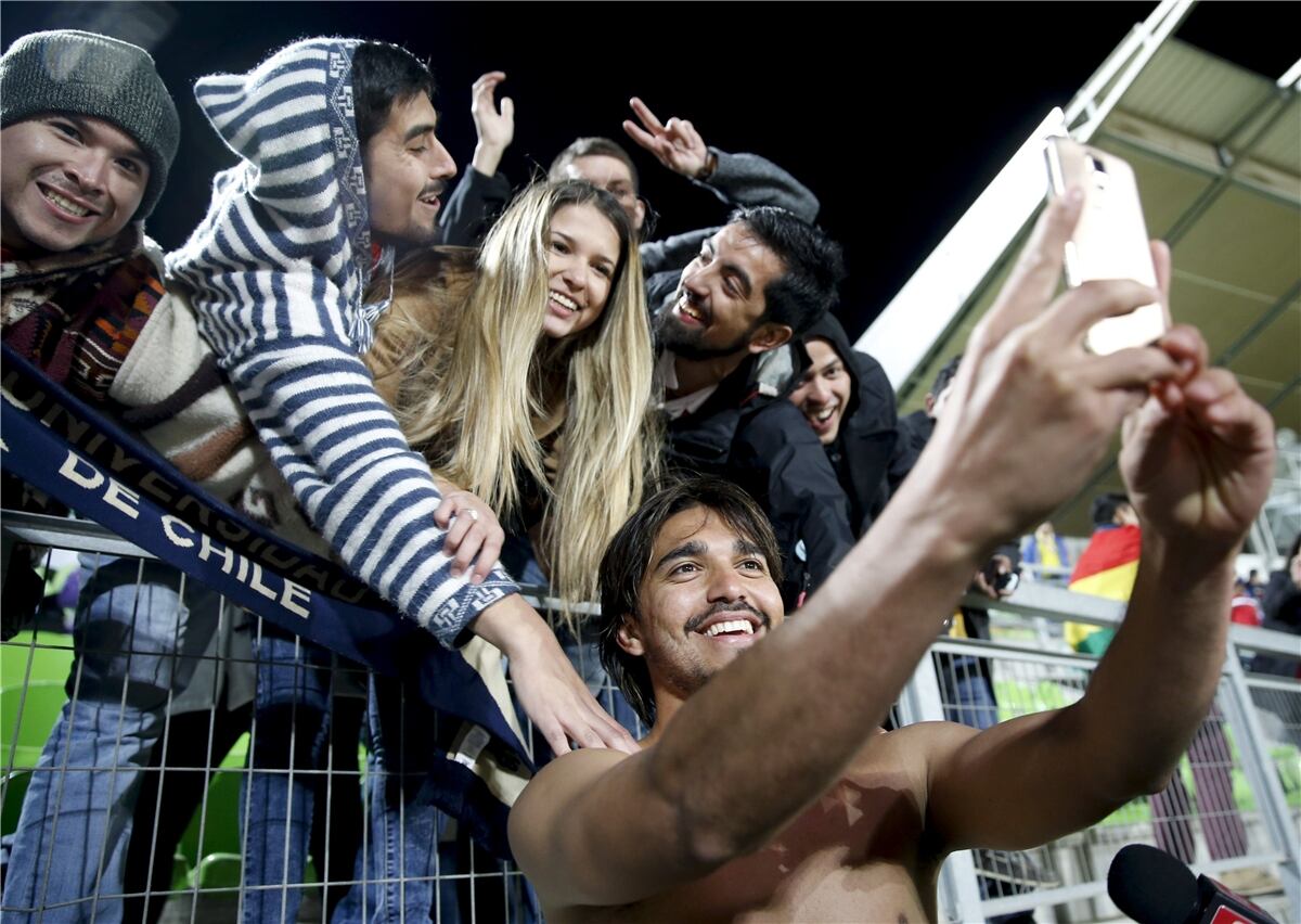 Selfie histórica: Martins celebró triunfo con la afición boliviana