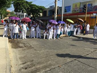 Cerca de 900 trabajadores del hospital universitario del Caribe (HUC), en la ciudad de Cartagena, bloquearon la avenida del consulado, por atrasos en el pago de salarios