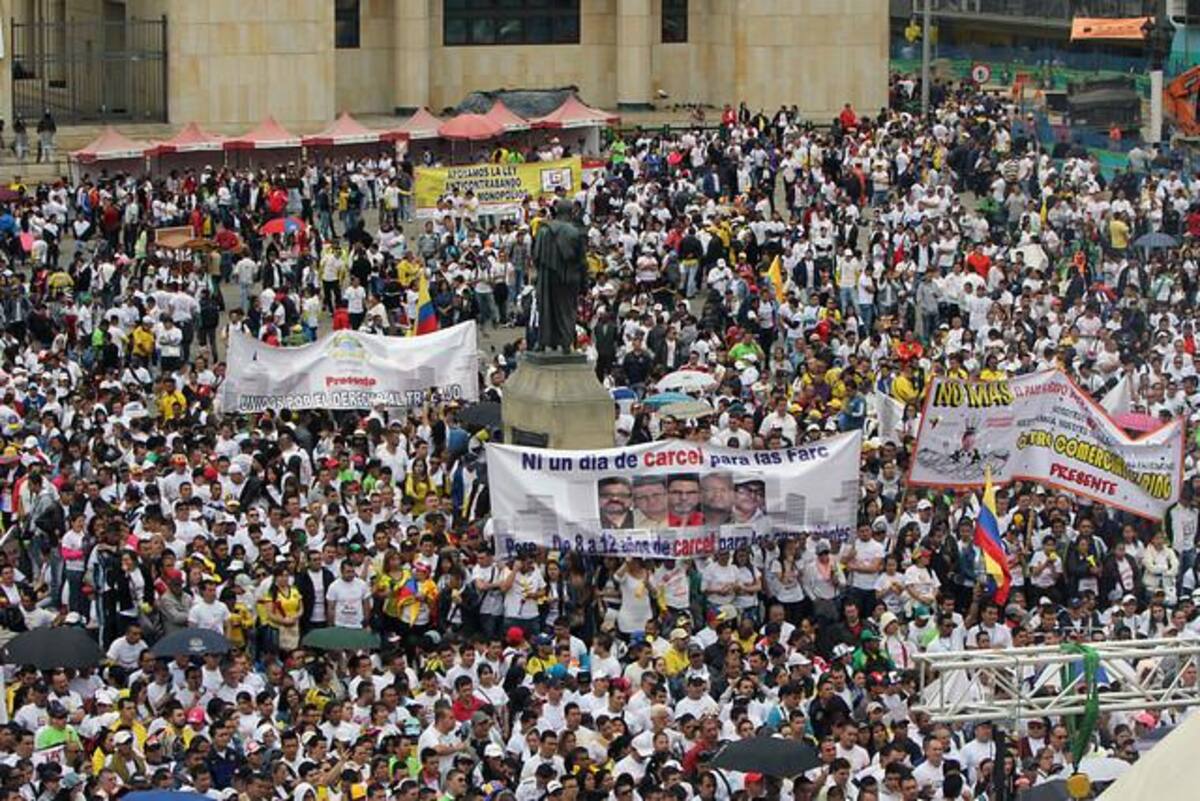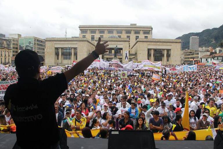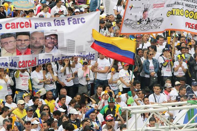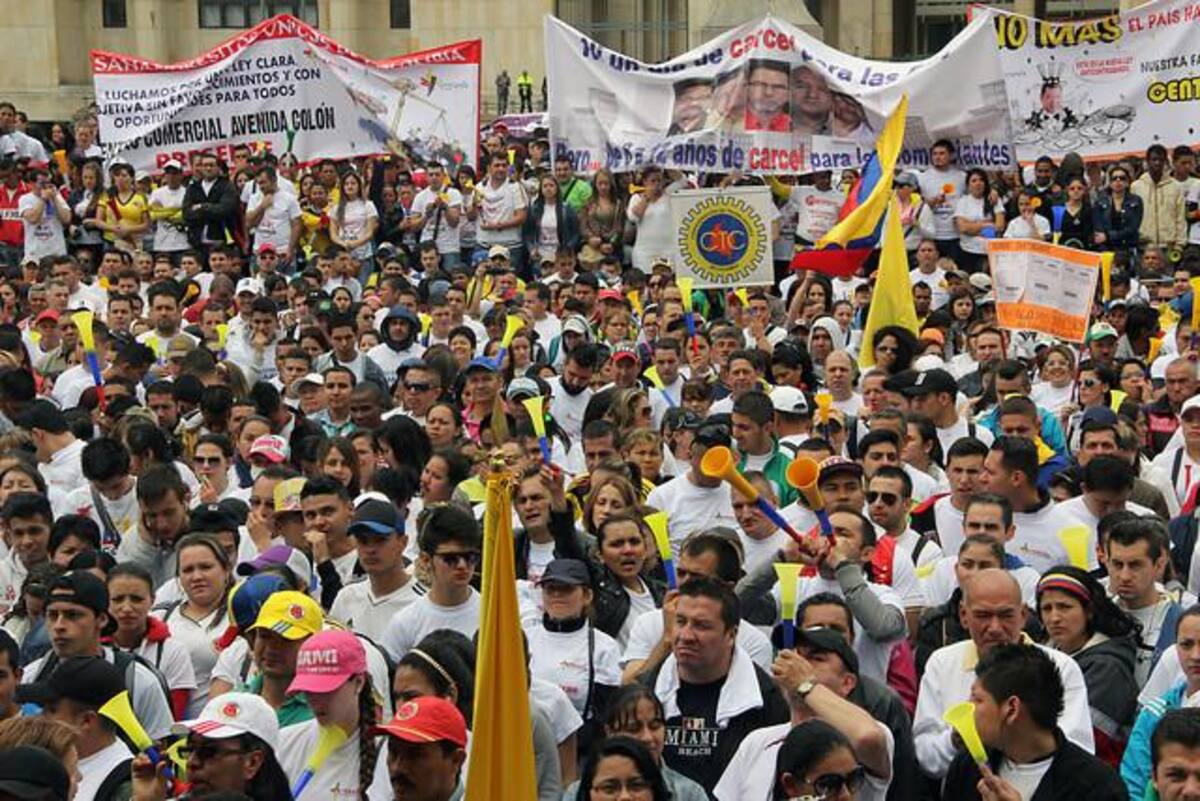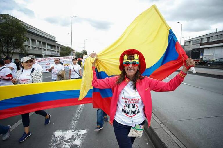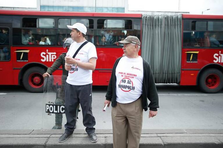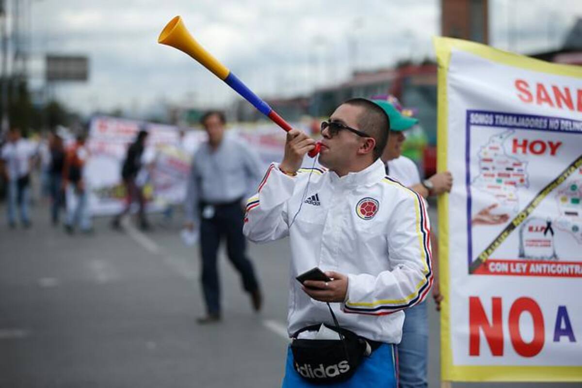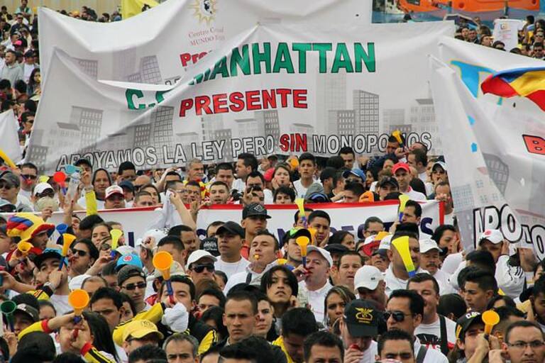 Con pancartas y banderas de Colombia envían mensajes constra el "monopolio".
