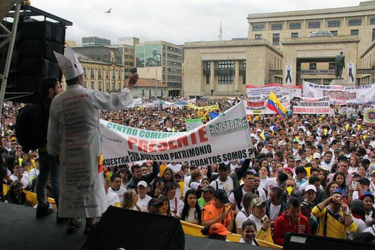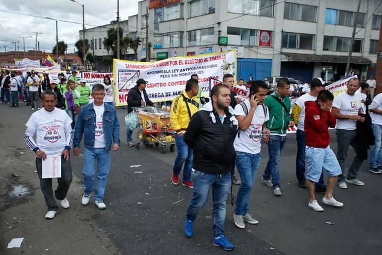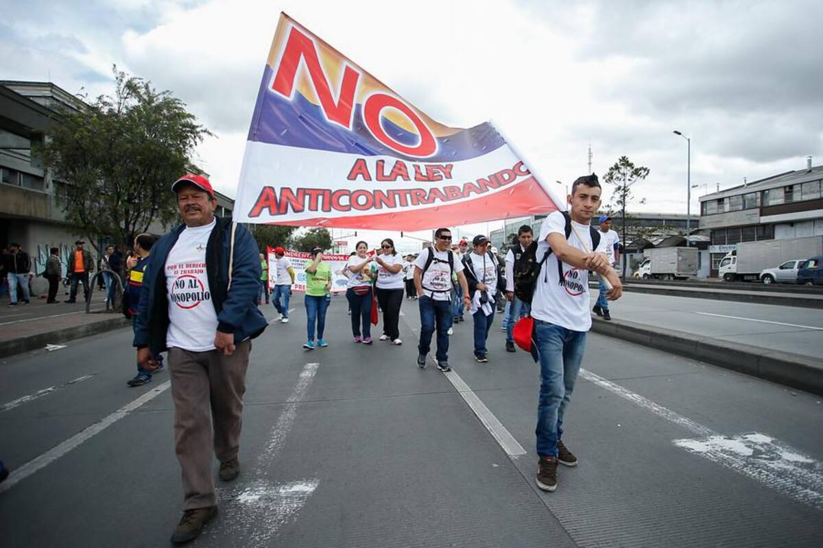Comerciantes de San Andresito marchan en Bogotá contra ley anticontrabando