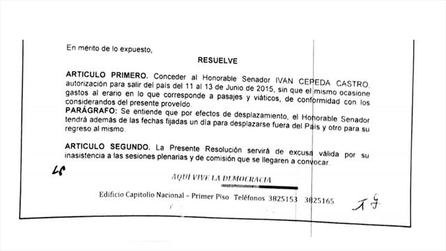 Este es el documento donde se le otorga el permiso de viaje a Iván Cepeda.