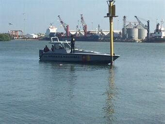 Miembros de guardacostas de la armada nacional intentan encontrar en la ciénaga de las quintas y en la bahía de Cartagena cerca a la sociedad portuaria en el barrio manga el cuerpo de Fabián Sepúlveda, un mototaxista que testigos aseguran cayó al agua con su motocicleta