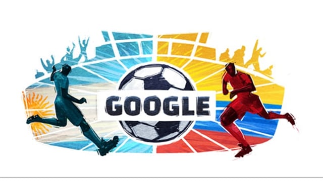 Mientras en Colombia los hinchas invaden de amarillo las calles a la espera de revivir el mítico 5-0 sobre la selección albiceleste, y los argentinos esperan que no se presente un escenario similar al vivido por Martín Palermo en la Copa América de 1999, el gigante técnológico Google dedica su doodle del día de hoy a ambientar el duelo futbolístico entre estas dos selecciones