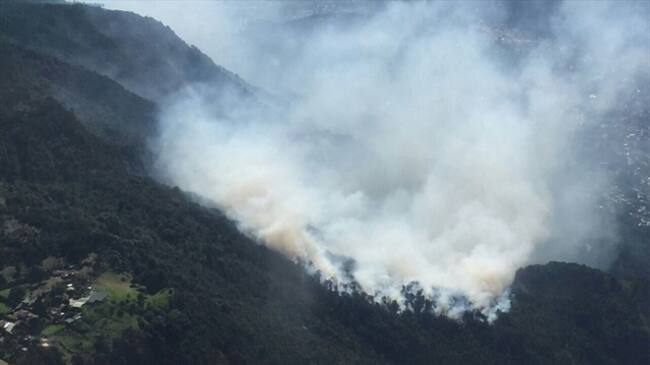 Bomberos en Medellín, tratan de controlar gigantesco incendio forestal