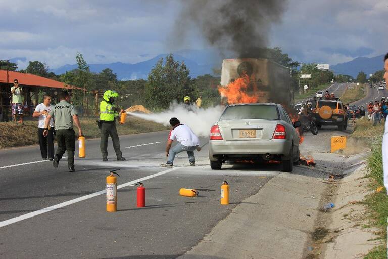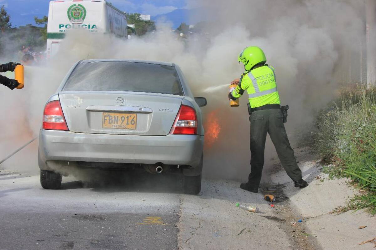 Sus ocupantes salieron ilesos gracias a la acción de la Policía. En el lugar se hizo presente el coronel Juan Francisco Peláez Ramírez, director de Tránsito y Transporte de la Policía Nacional.