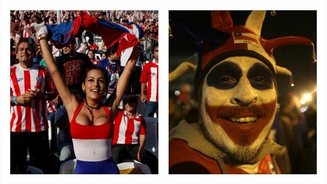 Al parecer, existe un pacto entre los encargados de trasmitir los partidos de fútbol según el cual el hincha payaso debe ceder cincuenta y seis segundos por cada minuto de fama a la que aspire a mujeres adultas que griten y salten como si quisieran que su brassier se reventara, que sacudan sus cuerpos empacados al vacío cual pollo de supermercado bajo la camiseta de su equipo, y cuyos pómulos resaltados por el rubor permanezcan enmarcados por extensiones de pelo que jueguen coquetamente con el viento. Mujeres que como Larisa Riquelme o Natalia Betancourt refrescan la trasmisión con su belleza, y reciben a cambio cuartos de hora que se pueden extender por días o meses dando vueltas en redes sociales, catálogos de vestidos de baño y por supuesto revistas para hombres. Sin importar cuál sea la copa que uno vea (hablo de fútbol, no del brasier) la cosa funciona así. Sea el Mundial, sea la Copa América, incluso si se trata del Mundial Femenino, la trasmisión les entrega a ellos varios minutos de mujeres que parecen sacadas del Olimpo, mientras que a nosotras apenas si nos tira las sobras de imágenes de todo tipo de hichas payaso