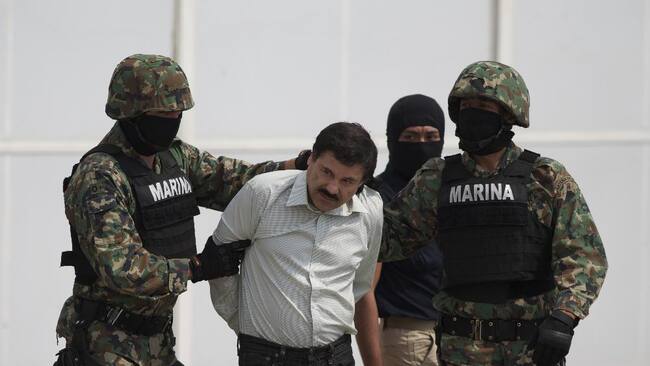 Foto 5 de 6Joaquín 'El Chapo' Guzmán es escoltado a un helicóptero con las manos esposadas, tras su captura en febrero de 2014.