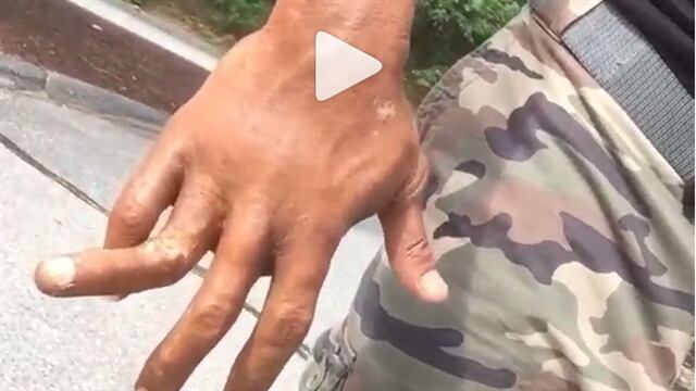Al parecer, el actor y luchador tuvo un accidente en su dedo en la filmación de su última película.
