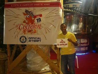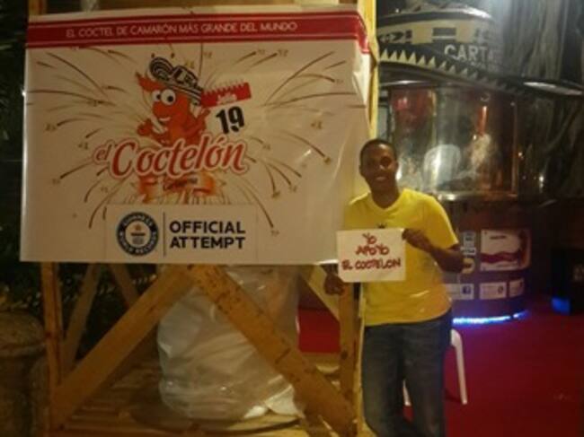 La copa donde se preparará el Guinness Worlds Records del coctel de Camarón más grande del mundo ya se encuentra en la ciudad de Cartagena a la vista de los cartageneros y visitantes, con una altura de 3 metros y 170 de diámetro se pretende conquistar el Guinness y superar a México que actualmente cuenta con el Records con mil 161.5 kilogramos de camarón