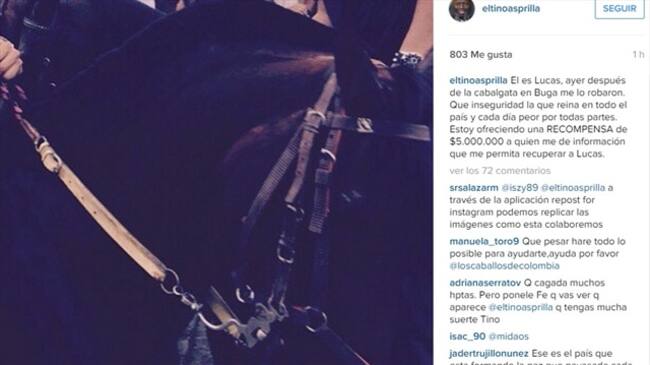 Añadió el oficial que la policía está ofreciendo una recompensa millonaria para que sea devuelto el caballo que en medio del jolgorio y el licor en las ferias del municipio de Buga, en el Valle del Cauca, perdió la gloria del futbol colombiano Faustino Asprilla.