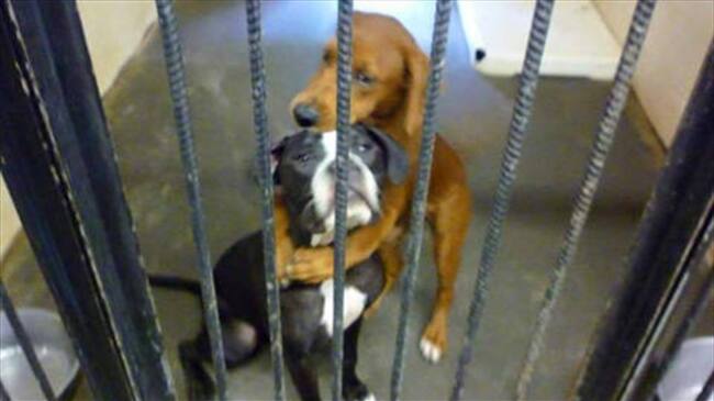En las redes sociales se ha vuelto viral la imagen de dos perritas que minutos antes de ser sacrificadas, al parecer, se abrazan, al ver la conmovedora imagen impulsó a los funcionarios del refugio publican la fotografía en las redes sociales para encontrarles un hogar y salvarlas