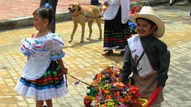 Decenas de niños participan en el tradicional desfile de silleteritos en el barrio La Floresta, donde en su espalda cargan silletas, de no más de 5 kilos, pero que tienen un gran peso de tradición y costumbre paisa