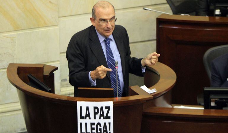 Humberto de la Calle, en conferencia de prensa desde la Casa de Nariño, explicó que el llamado ‘congresito’ no es un inamovible del gobierno y que es tan solo “una de las múltiples opciones dentro de los varios mecanismos posibles para implementar los acuerdos de paz. Cuando el presidente Santos se refirió a él, no se refería a la revocatoria del Congreso ni a la derogación arbitraria de ningún tipo”.