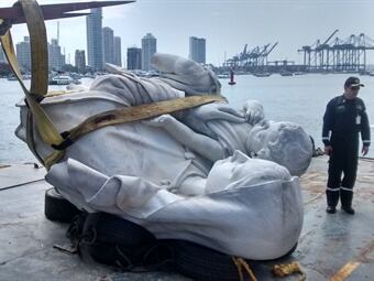 Los buzos de salvamento de la Armada Nacional rescataron la escultura del fondo del mar, encontraron el 95% de la misma