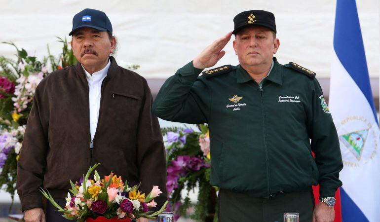 La Fuerza Naval conmemoró este miércoles su 35 aniversario de constitución en la Plaza de la Fe "Juan Pablo ll", una explanada ubicada a orillas del lago Xolotlán o de Managua, con una ceremonia encabezada por Ortega y el jefe del Ejército, el general Julio César Avilés.