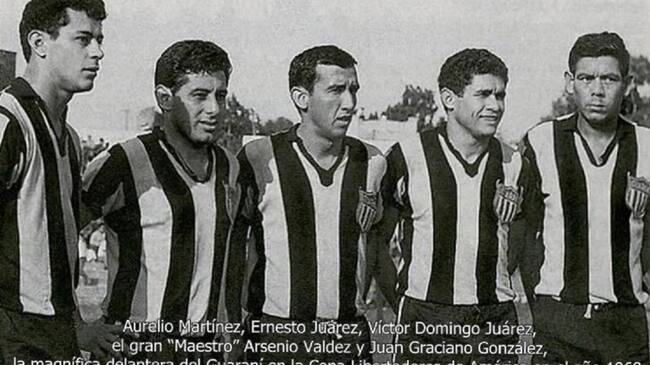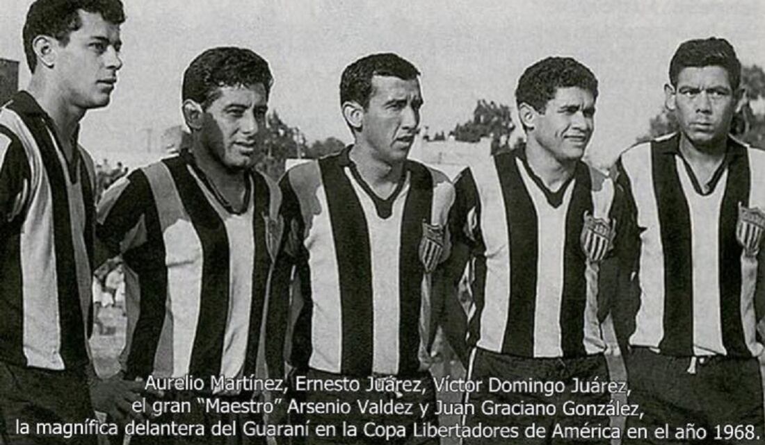 En esta delantera de Guaraní de Paraguay están entre otros: Ernesto Juárez, argentino que fue de River Plate, Arsenio Valdez y Juan Graciano González, del Deportivo Pereira. González, además jugó en Nacional de Montevideo.