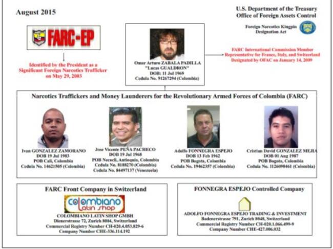 Las autoridades norteamericanas afirman que estos individuos proporcionaban apoyo a Omar Arturo Zabala Padilla, alias ‘Lucas Gualdrón’, miembro de la Comisión Internacional de las Farc para Francia, Italia y Suiza.