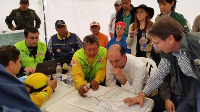 El ministro de Ambiente, Gabriel Vallejo, llegó a la zona de la emergencia donde un incendio forestal afecta a cerca de 200 hectáreas de vegetación en Villa de Leyva, Boyacá.