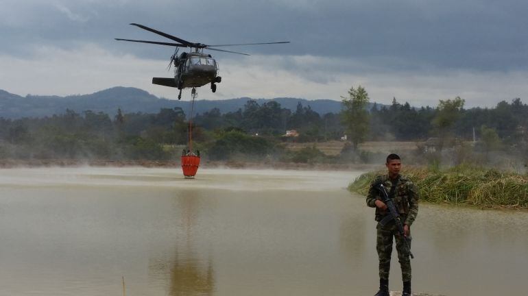 El ministro de Ambiente, Gabriel Vallejo, señaló a Caracol Radio: " contamos en total con 5 aeronaves y logramos tener 3 helicópteros permanentemente en el aire haciendo las descargas de agua y el líquido retardante".