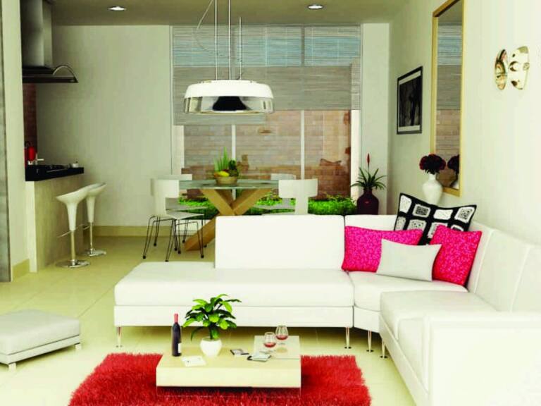 En el primer piso se encuentra la sala-comedor, un baño sin ducha, cocina integral, estudio, patio de ropas, jardín interior, antejardín y dos parqueaderos. En el segundo piso, un baño auxiliar, dos habitaciones auxiliares cada una con closet y una habitación principal con baño privado y vestier. / Paisaje Urbano