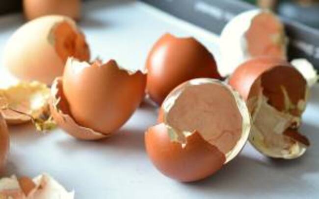 Está compuesta por una red de proteínas sobre la que se depositan cristales de carbonato de calcio (igual que el mármol) para darle la dureza que protege el contenido. Si sumergimos un huevo en vinagre vemos que sobre la cáscara se generan burbujas, estas son el dióxido de carbono que se ha formado por la reacción entre el carbonato y el ácido del vinagre. A las 24 horas veremos que la cáscara del huevo se ha disuelto totalmente y solamente nos queda la clara y la yema contenidas en una delgada membrana.