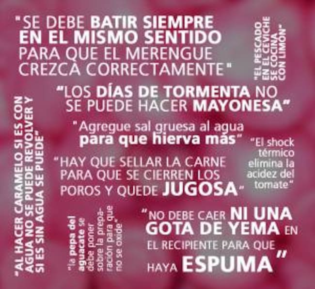 Hay Indicaciones culinarias que son misterios que se han incorporado al quehacer de la cocina a través del tiempo. La ciencia nos ayuda a entender por qué las recetas son como son y a desterrar afirmaciones sin fundamentos. Aunque no seamos conscientes de ello, cuando cocinamos ocurren cambios a nivel fisicoquímico en los alimentos que modifican la textura o el sabor. Estas modificaciones son las que llevan al éxito o al fracaso de las recetas. Comprender qué ocurre internamente en los ingredientes nos ayudará a no fallar en el próximo intento.