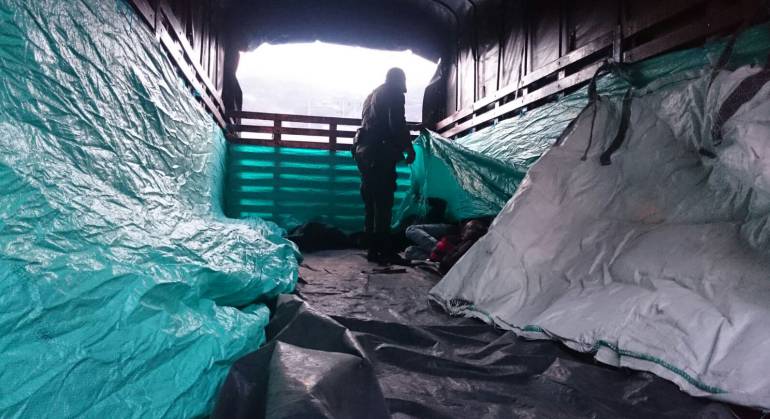 Los ciudadanos estaban escondidos en la carrocería de dos vehículos tipo camión que fueron interceptados en el sector de los Toboganes en el municipio de Imues, luego de hacer tránsito desde Ecuador.