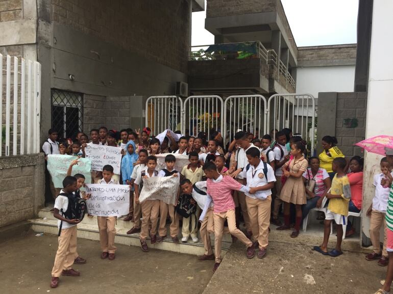 Los estudiantes de la institución educativa del barrio Fredonia, ubicada al sur de Cartagena, protestaron para exigir la contratación de los docentes que hacen falta para dictar algunas materias y porque completan una semana sin el servicio de la energía y sin agua potable.