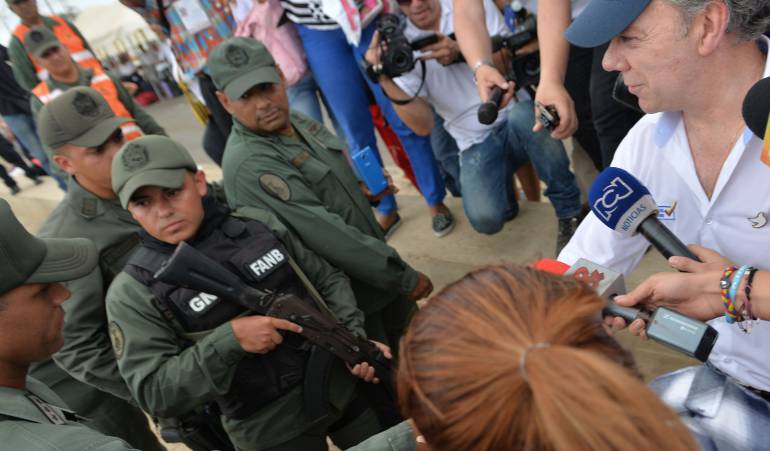 Santos saluda en la frontera a militares venezolanos