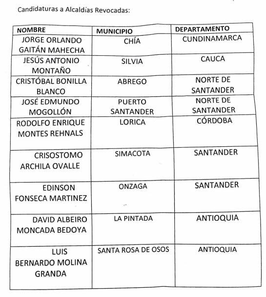 "Estamos combatiendo toda clase de situaciones que puedan afectar la democracia. De las candidaturas revocadas nueve corresponden a aspirantes a las alcaldías, una a gobernador, 96 a JAL, 12 a asambleas departamentales y 479 a Consejos Municipales", informó el magistrado Rivera.