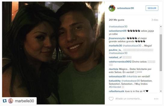 Fotos de Marbelle y Sebastián Salazar juntos con textos como "Contigo" y "Llamémosle magia" han llamado la atención de los usuarios de las redes sociales.