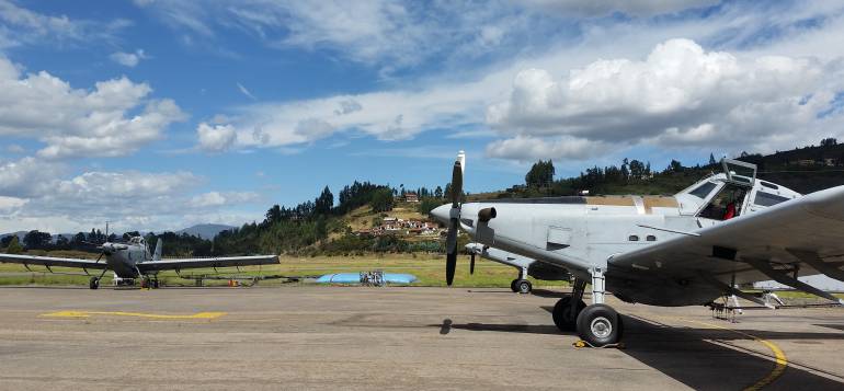 El teniente coronel Virgilio Forero, del Grupo de Ponalsar, manifestó a Caracol Radio: “haciendo uso de los aviones que se denominan tractores del aire y con toda la tecnología se ha venido utilizando también para el control de los cultivos ilícitos en el país, en principio estarán cerca de dos días en Boyacá hasta que se supere la emergencia".
