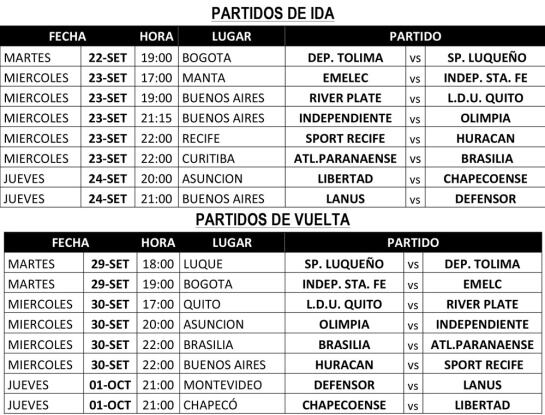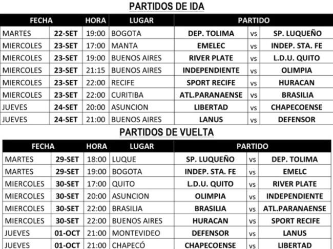 Por su parte Santa Fe enfrentará al ecuatoriano Emelec el 23 de septiembre en condición de visitante a las 5:00 p.m. y cerrará la llave el 29 de septiembre a las 7:00 p.m.