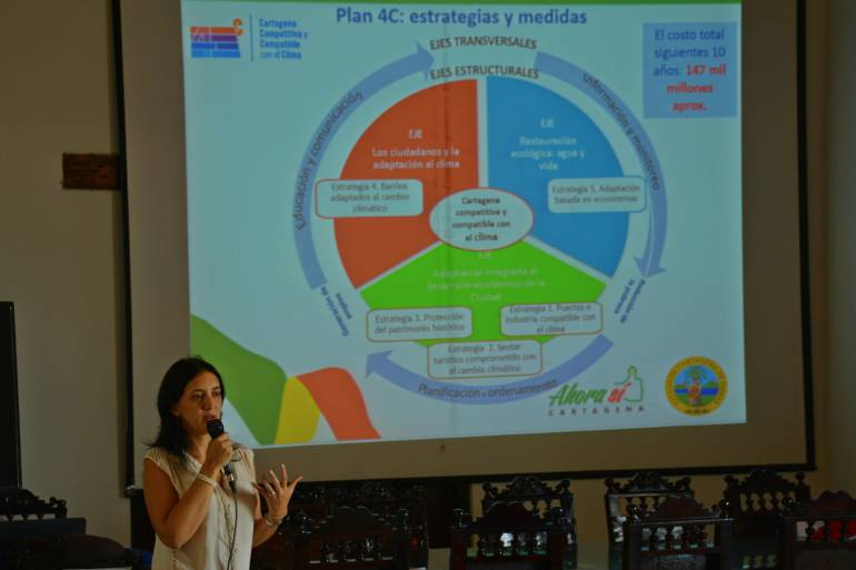 La ciudad de Cartagena es considerada como referente en el manejo del Plan de Adaptación al Cambio Climático ya que es la primera ciudad costera que cuenta con una hoja de ruta el Plan 4C ( Cartagena Competitiva y compatible con el Clima), que permite a través de 5 estrategias concretas enfrentar las amenazas del cambio climático: puertos e industria compatible con el clima, sector turístico comprometido con el cambio climático, protección del patrimonio histórico, barrios adaptados al cambio climático y adaptación basada en ecosistemas.
