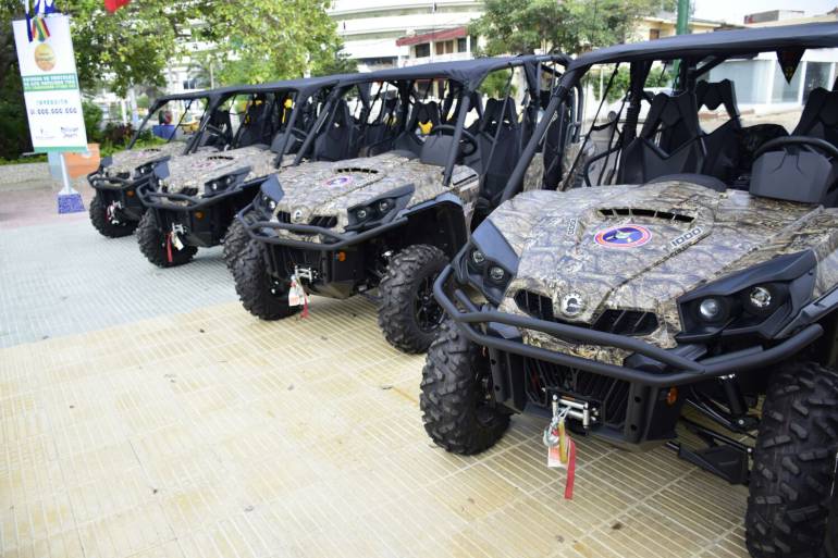 La Gobernación de Bolívar a través de la Dirección de Convivencia y Seguridad, cumpliendo con el plan Departamental de Desarrollo, entregó 10 vehículos tipo ‘Commander’, todo terreno, de 1000 cc y cuatro puestos a los Batallones No. 12 y 13 de la Infantería de Marina.
