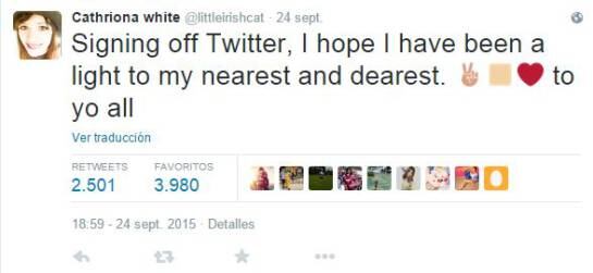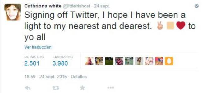 Igualmente, se despidió de sus seguidores en Twitter, en un mensaje en el que anunciaba su salida de la red social, esperando "haber sido una luz para sus seres queridos".