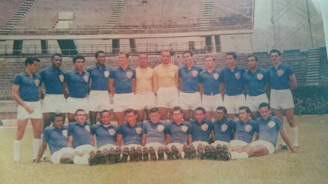 Arriba (Izq-Der): ‘Cuca’ Aceros, Eusebio Escobar, Antonio Rada, ‘Maravilla’ Gamboa, ‘Velitas’ Pérez, Achito Vivas, ‘Caimán’ Sánchez, Oscar López, Hernando Tovar, Rolando Serrano, Marcos Coll y Cobo Zuluaga. Abajo (Izq-Der): Luis. C. Paz, Ignacio Calle, Marino Klinger, Zipa González, Jaime Silva, Carlos Aponte, Canocho Echeverry, Charol González, Jairo Arias y Aníbal Álzate