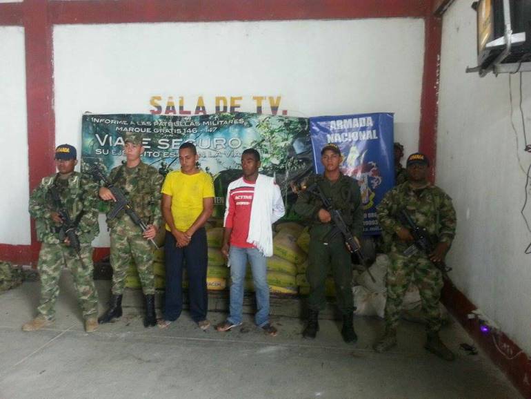 En desarrollo de una operación conjunta entre la Armada Nacional y el Ejército Nacional con el apoyo de la Policía Nacional fueron incautadas 2,7 toneladas de cemento, en un puesto de inspección y control fluvial, sobre el río Cauca en el municipio de Achí, Bolívar.