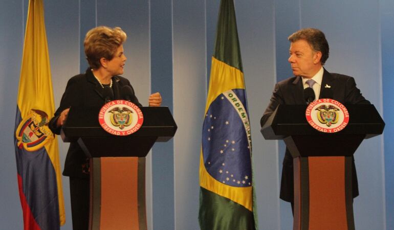 El presidente Juan Manuel Santos al término de la reunión con su homóloga de Brasil, Dilma Russeff, agradeció el buen estado de las relaciones bilaterales así como anunció varios acuerdos de cooperación binacional en diferentes sectores.