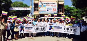 Los candidatos del Centro Democrático en todo el país iniciaron una campaña denominada ‘Lo que es con Uribe es conmigo’, como un gesto de apoyo y solidaridad hacia el expresidente Álvaro Uribe quien ha venido criticando el proceso de paz bajo el argumento de que habría impunidad. Dieron a conocer un comunicado que fue transmitido en simultánea en 32 conferencias de prensa en el país y en varias ciudades de los Estados Unidos y España.