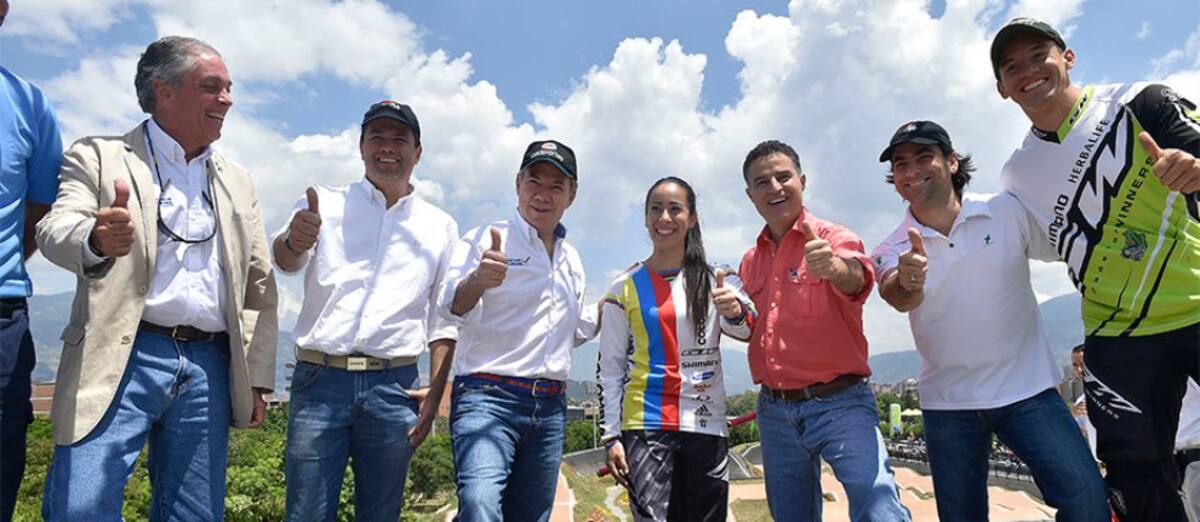 El Presidente de la República y el Alcalde de Medellín acompañaron a la ciclista en la apertura de la pista que llevará su nombre.