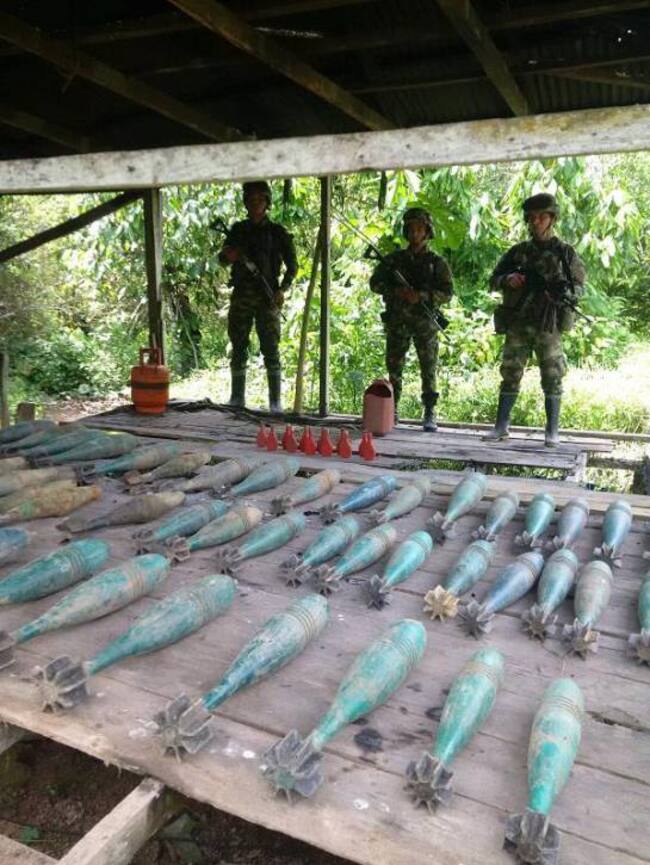 En el lugar se hallaron almacenados 47 artefactos listos para ser empleados en contra de las tropas, la infraestructura vial, petrolera y energética. En el mismo lugar fueron halladas 9 granadas calibre 60 mm, una granada de 40 mm, así como material para la fabricación de los artefactos.