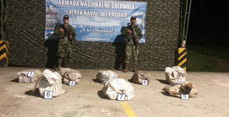 Desde esa área, cercana a la frontera con Panamá, se presume que los narcotraficantes pretendían sacar la droga vía marítima con rumbo hacia el norte del continente. En el lugar fueron hallados ocho costales de forma irregular, cargados con 150 paquetes, que por sus características de olor y color, contenían cocaína, avaluado en 5 millones de dolares.