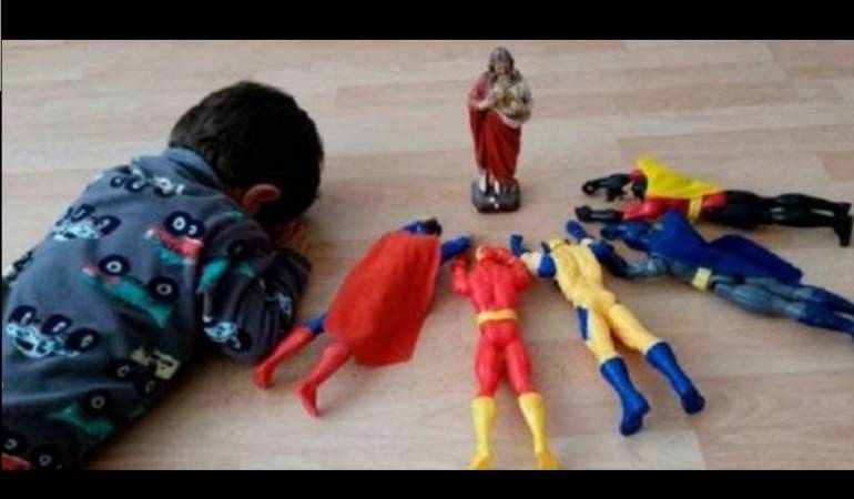 Se trata de la historia de Pablo, un niño colombiano que puso a sus superhéroes boca abajo ante una imagen de Jesús. Esa imagen fue capturada por su madrina María Juliana Escallón, quien la compartió en Instagram.
