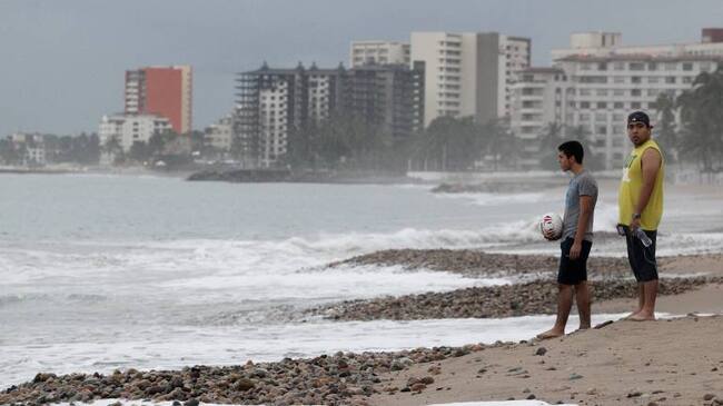 Unas personas caminan por la playa de Puerto Vallarta (México), que permanece en calma tras el paso del huracán Patricia.(EFE)
